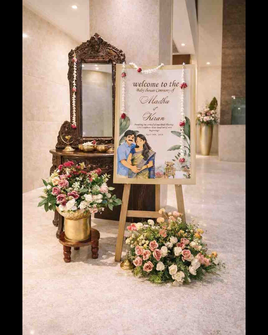 Handcraft Events & Studioz is a professionally managed event styling company in Coimbatore specializing in elegant and customized Baby Shower Ceremony Decorations. With 7+ years of experience in the event management industry and a consistent 100% successful event execution record, we have built a reputation for delivering well-planned, visually refined, and stress-free celebrations for families across Coimbatore. We don’t just decorate — we design memorable experiences. Our Expertise in Baby Shower Events • Theme Concept & Creative Styling Customized baby shower themes designed based on venue space, client preferences, and cultural traditions. • Premium Stage & Backdrop Design Structured backdrops, pastel balloon styling, floral installations, customized name boards, and elegant lighting concepts. • Traditional Valaikappu Decoration Authentic South Indian baby shower setups with floral arrangements, brass décor elements, and traditional styling aesthetics. • Home & Banquet Hall Decorations From intimate home ceremonies to grand banquet celebrations across Coimbatore. • Welcome Area & Photo Booth Design Professionally styled entrance décor and photo zones to enhance guest experience and photography moments. Why Choose Handcraft Events & Studioz? ✔ 7+ Years of Event Management Experience ✔ 100% Event Execution Success Rate ✔ Professional Planning & Structured Setup ✔ Premium Quality Materials & Finishing ✔ On-Time Installation & Coordination ✔ Customized Packages Based on Client Requirements Our focus is on quality, detailing, and client satisfaction, making us one of the trusted choices for baby shower decoration in Coimbatore. Service Locations in Coimbatore We provide baby shower decoration services across: RS Puram | Saibaba Colony | Peelamedu | Saravanampatti | Gandhipuram | Singanallur | Vadavalli | Race Course | Sundarapuram and surrounding areas.