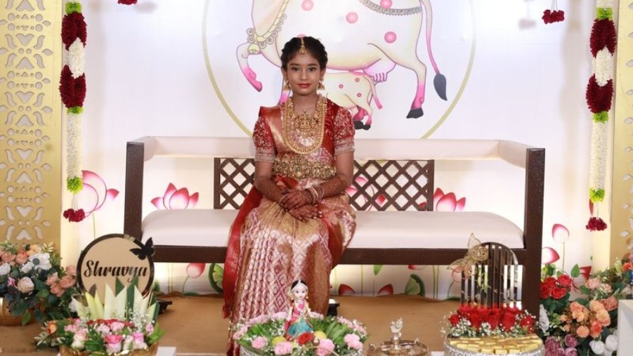 Top puberty ceremony planners in Coimbatore. Grand entry, Thai maman seer, plate decor, DJ, haldi